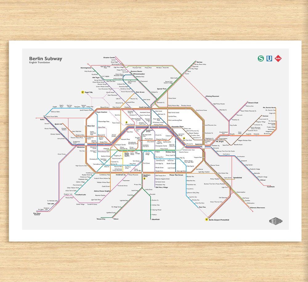 Berlin Metro Map: Literal English Translation A2 Art Poster